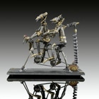 This war elephant gets its energy from a windmill attached to its back. The power of the wind is transferred to its modified locomotive system.