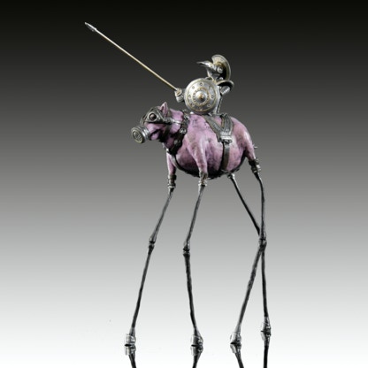 Der von Cervantes inspirierte Schweinreiter benutzt ein Rennschwein, um mit Schild und Lanze gegen Windmühlenelefanten und sonstigen Gegnern zu kämpfen.